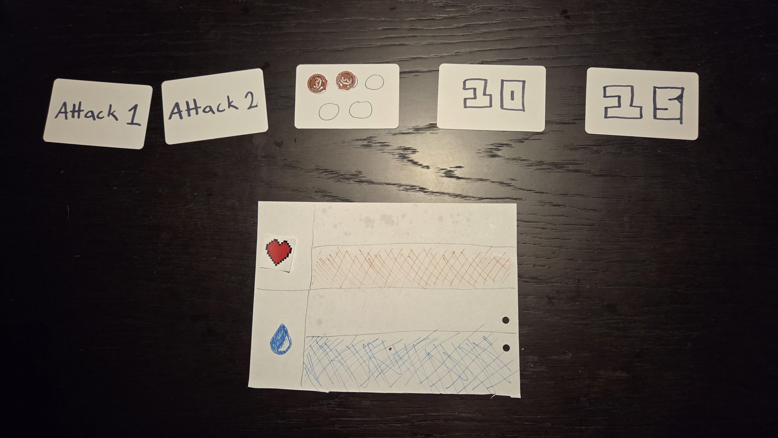 If I would’ve had more time I’d design more cards that combine attack and defense, such as a low damage card but it also adds a shield for the enemies next attack turn.