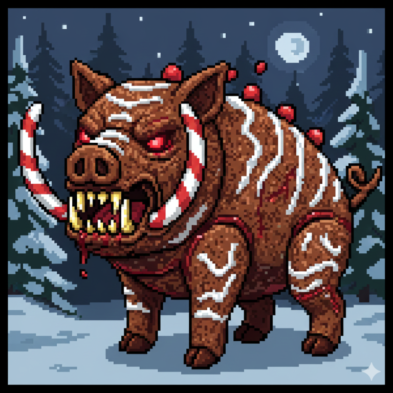 I created the simple narrative of that there’s a Candy Cane Portal that has appeared in the forest of our home village and evil gingerbread cookie men gets summoned out of it and invades the village.